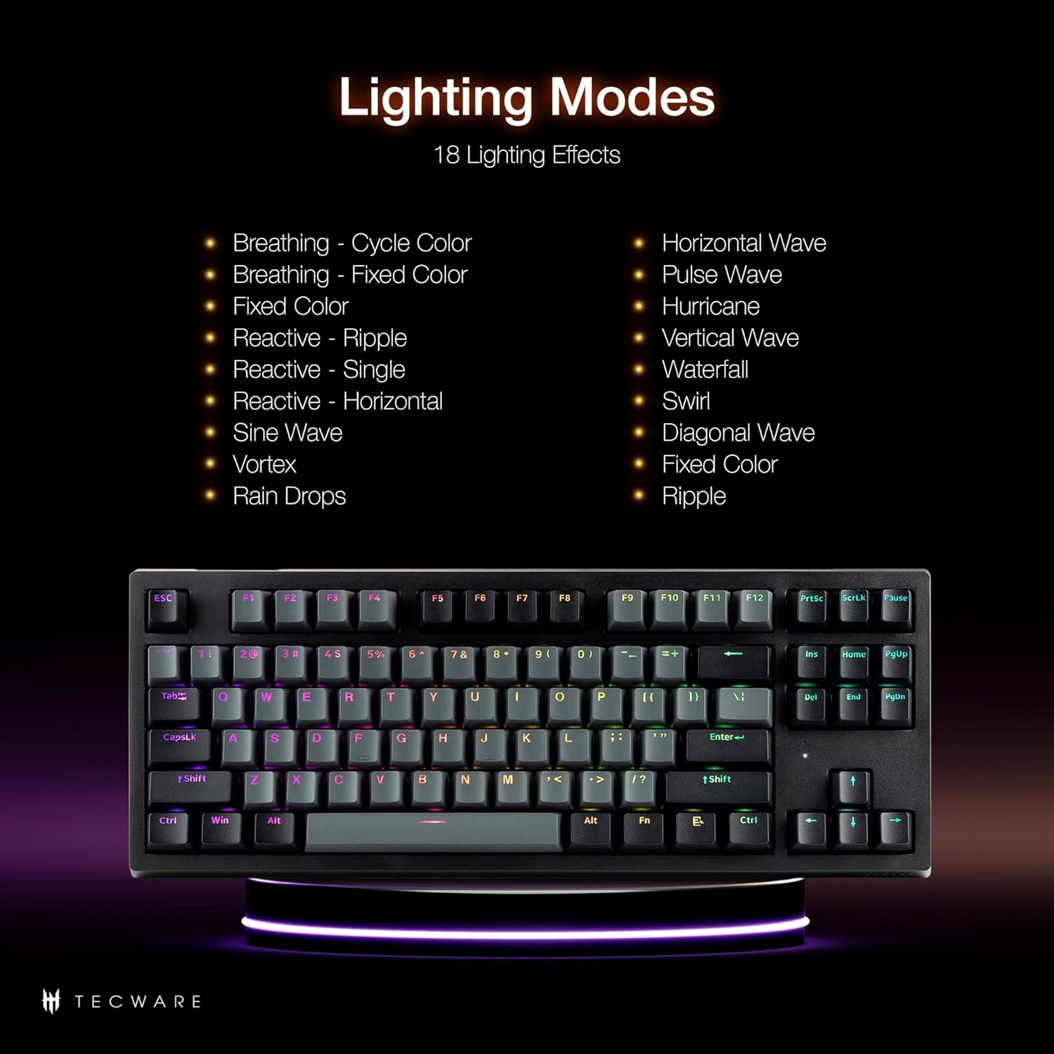 TECWARE ELITE Phantom+ 87-Key RGB Wireless / BT5.0 Mechanical Keyboard (Black) Wraith Orange Switch (Prelubed, 45g Tactile) Per Key Color and Lighting